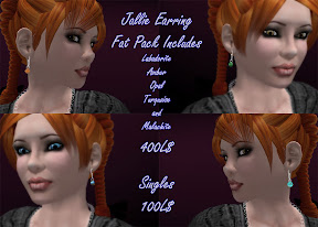 Ah, My "Evil Sister". She goes perfect in just about any situation. So do the earrings I made for her.. and Named after her. I released the original Labadorite earrings a while back. They have been very popular. I also kept getting request for them in different stones. I'm an accommodating person when it suits me.. so you asked for them, You got them. The Jallie earrings now come in Amber, Labadorite, Malachite, Opal, and Turquoise.Plans for Lapis, Jade, Blue chalcedony, and Onyx are in the works.